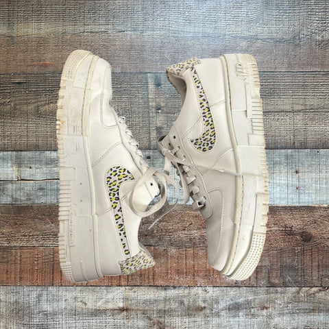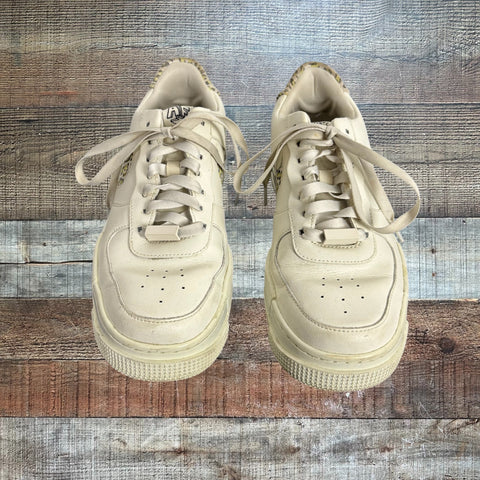 Nike Air Force 1 White Leather Animal Print Sneakers- Size 9.5
