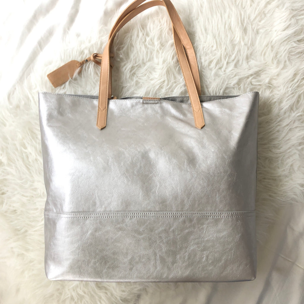 Sole Society Silver Inell Large Tote Soft Vegan Leather