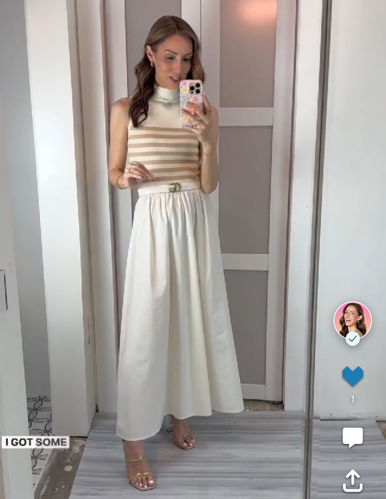 In The Beginning Cream/Tan Striped Maxi Dress - Size S (See Notes)