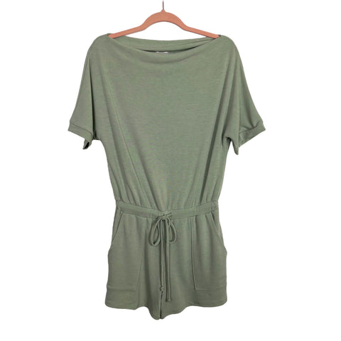 Pink Lily Green Wide Neck Drawstring Waist Romper- Size XS (sold out online)