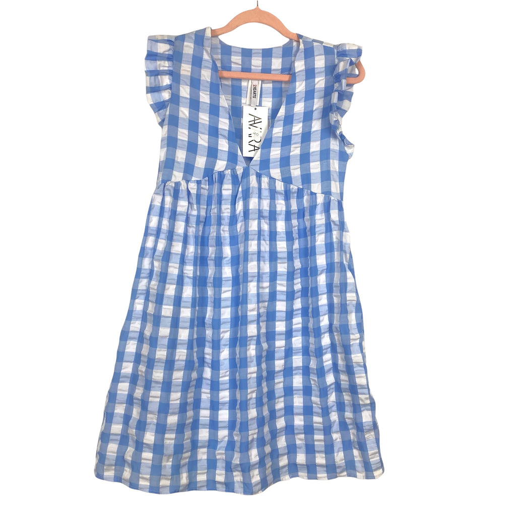 2Hearts Blue/White Checker Ruffle Sleeve Hope Dress NWT- Size S (sold out online)