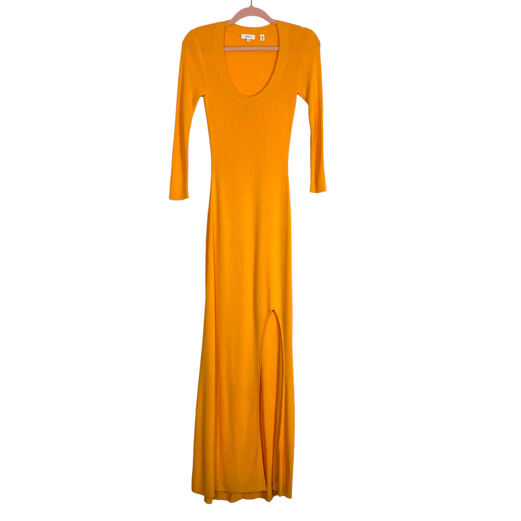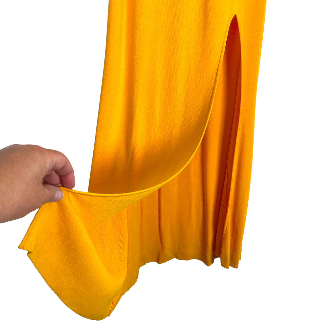 A.L.C. Golden Yellow Ribbed Knit Scoop Neck with Front Slit Maxi Dress- Size XS (see notes)