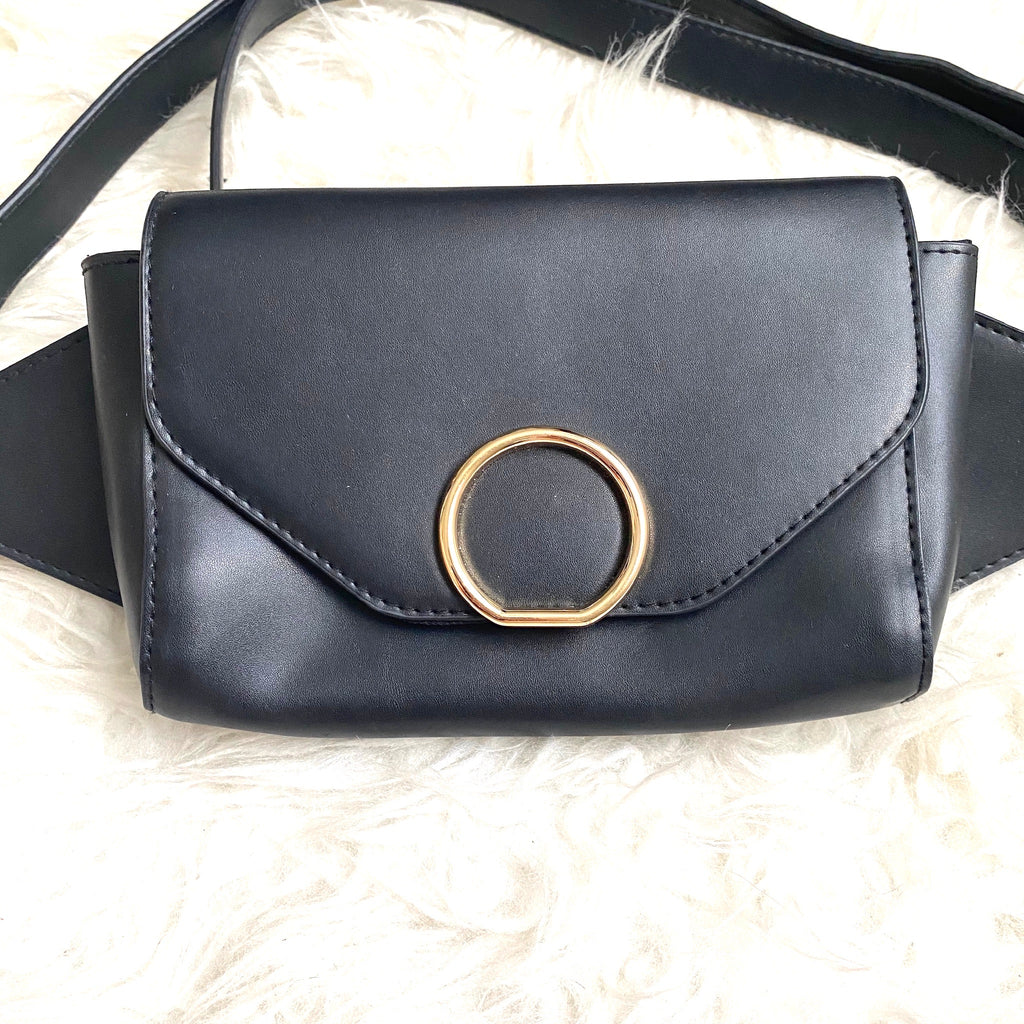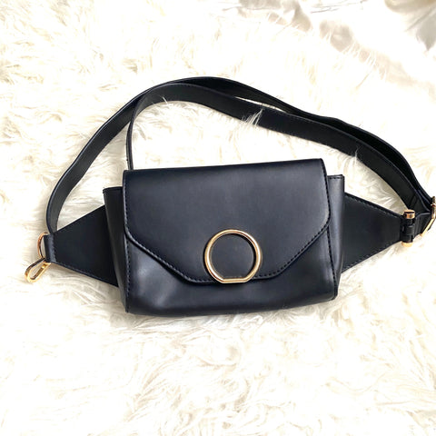 A New Day Black Faux Leather Magnetic Closure Fanny Pack (like new condition)