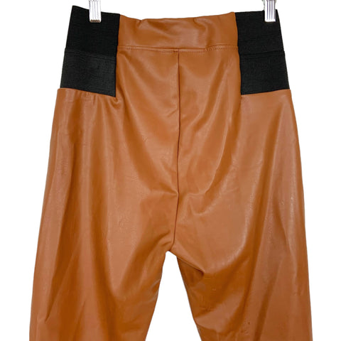 A New Day Brown Faux Leather with Black Elastic Side Waist Panel Leggings- Size S (Inseam 27")