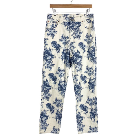 Abercrombie & Fitch Blue Floral 90's Straight Ultra High Rise Jeans- Size 10/30 (sold out online, Inseam 30”)