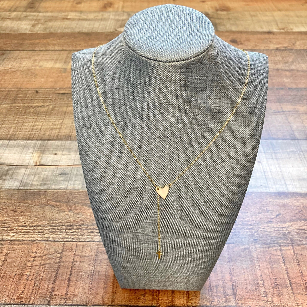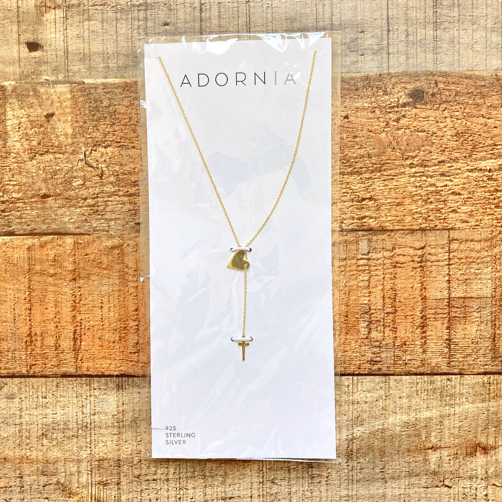 Adornia Yellow Gold Heart and Cross Necklace
