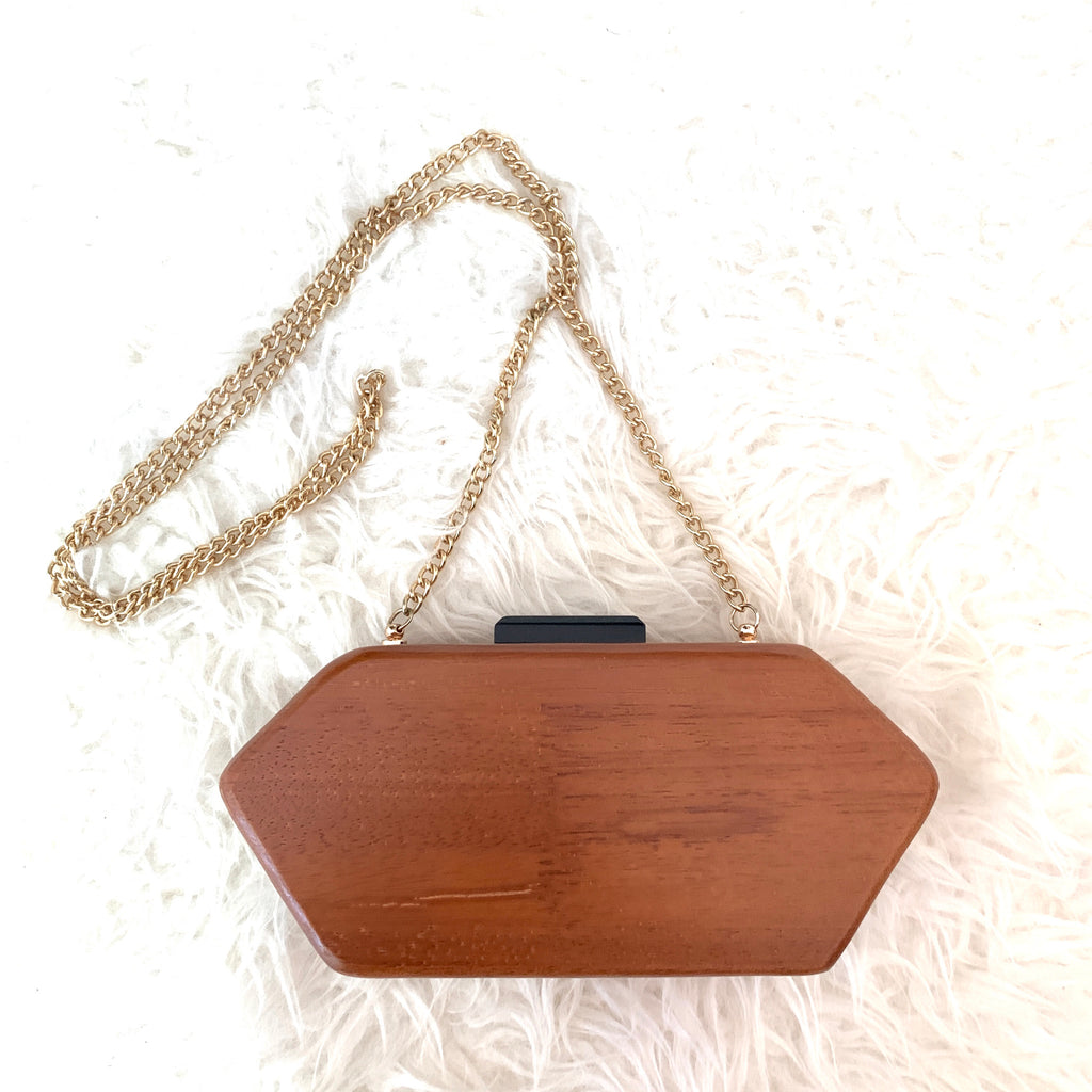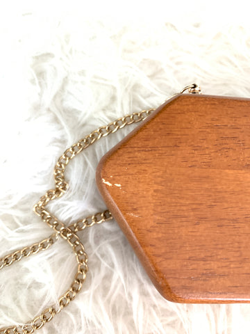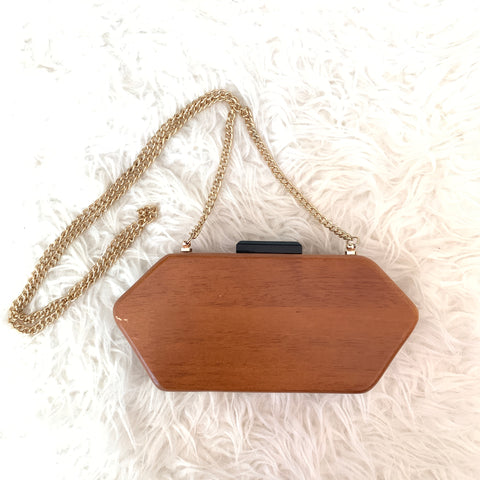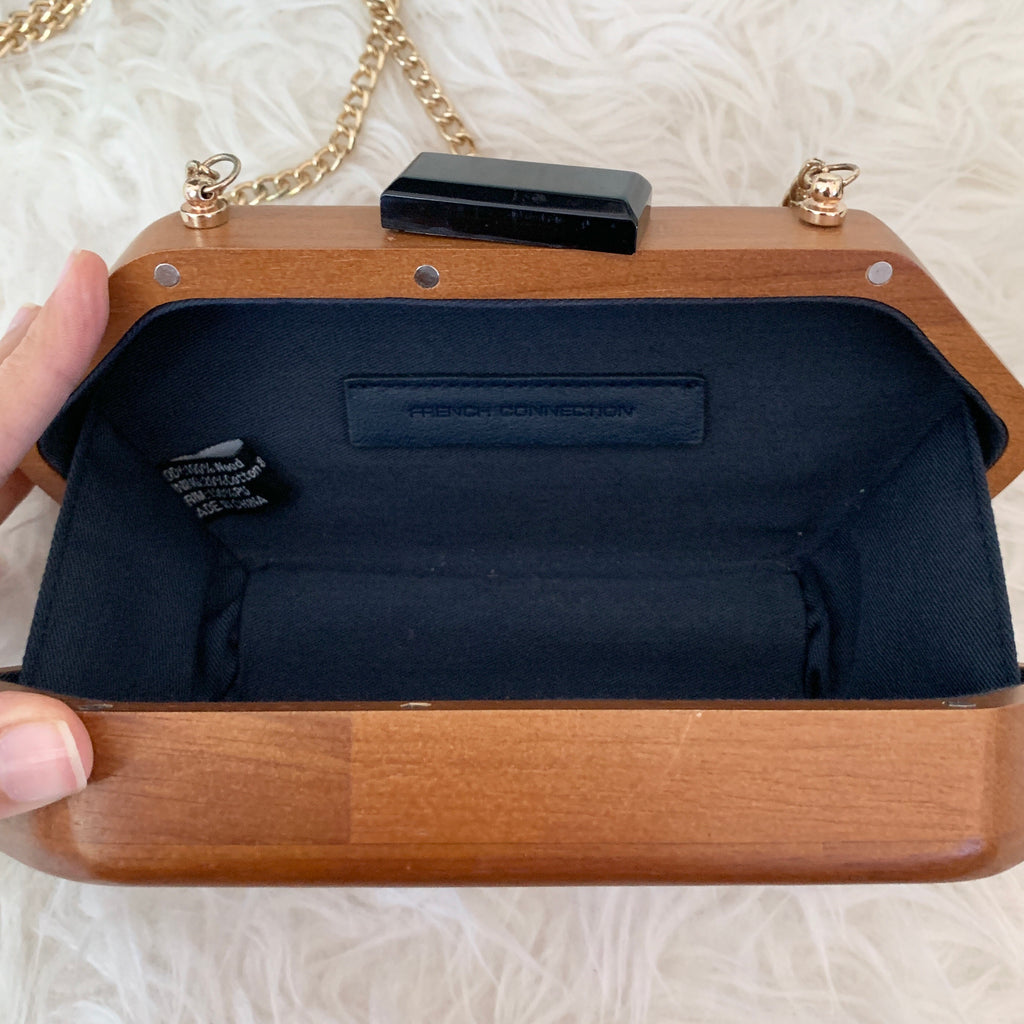 French Connection Wooden Clutch with Gold Chain (see notes)