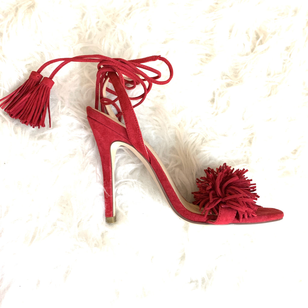 Ivanka Trump Red Hettie Fringe Heels- Size 6
