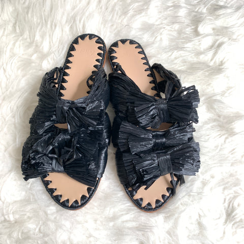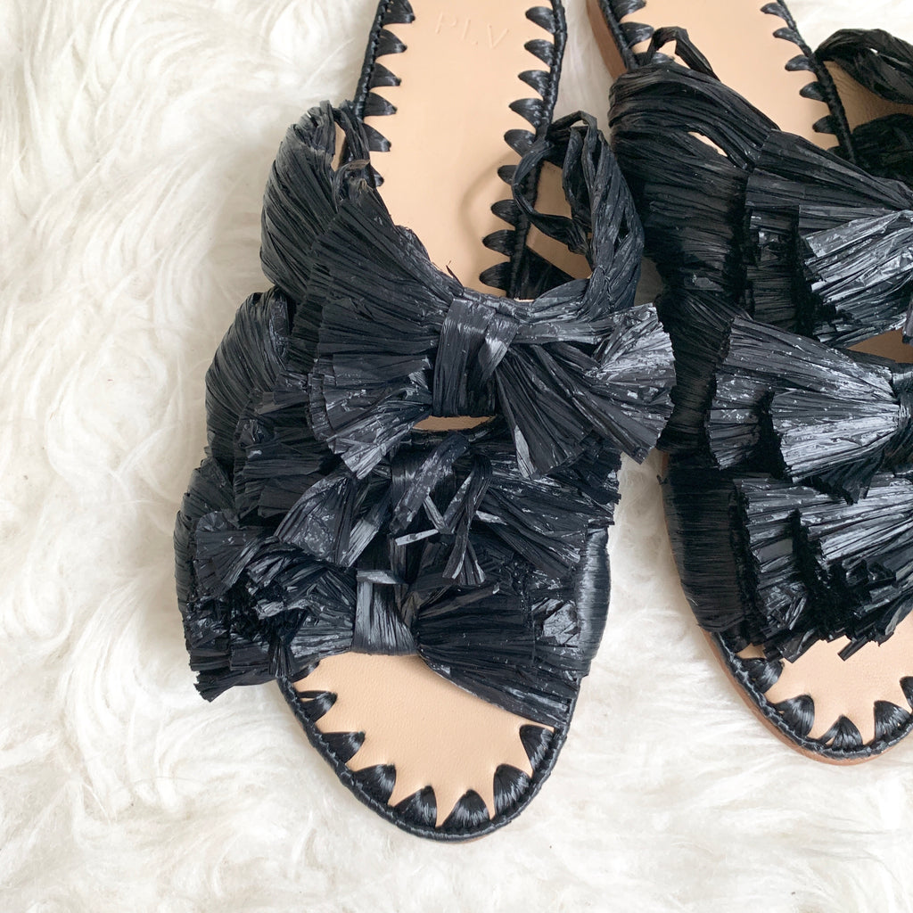 Pour La Victoire Black Straw Sandal- Size 6