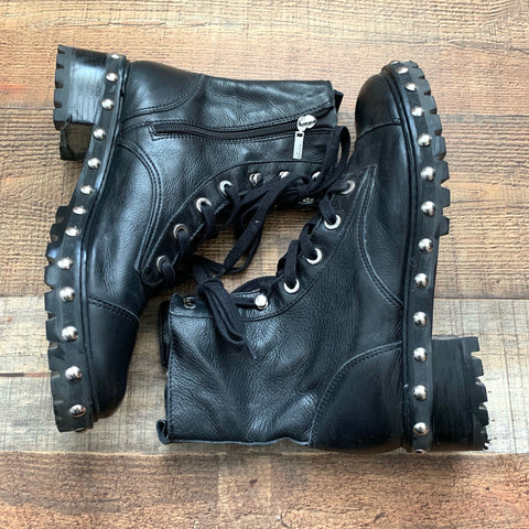 Schutz Black Andrea Leather Chunky Combat Boot With Lug Sole & Metal Studs- Size 9